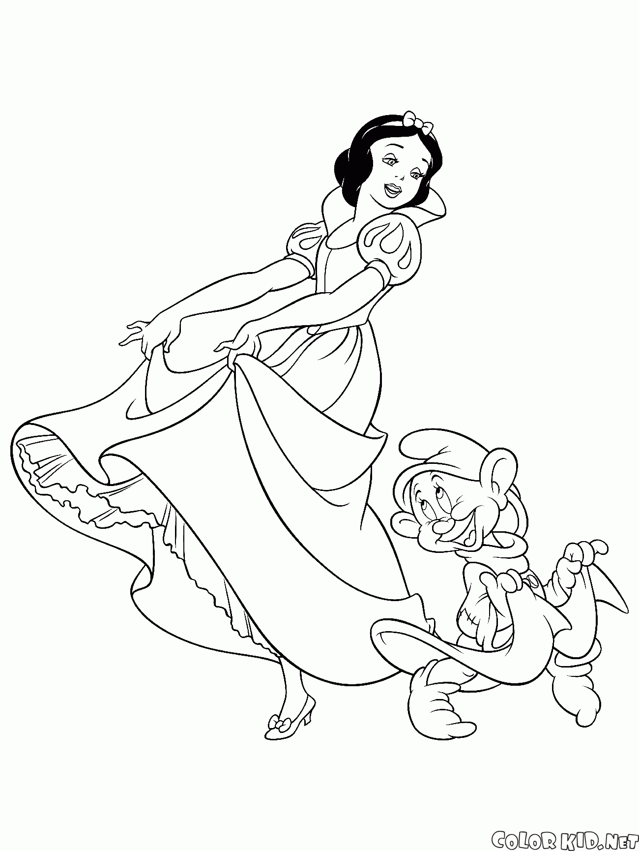 Disegni da colorare - Biancaneve balla con un Nano