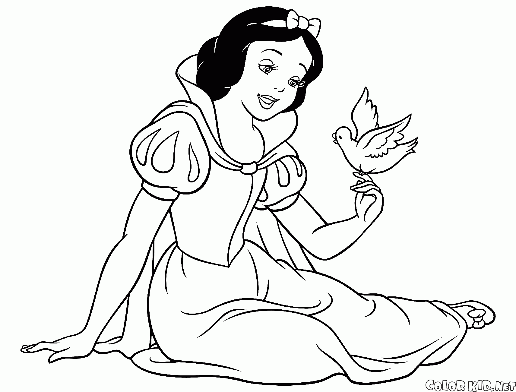 Puoi scaricare e stampare le pagine da colorare per bambini Biancaneve e un uccello dal nostro sito web.