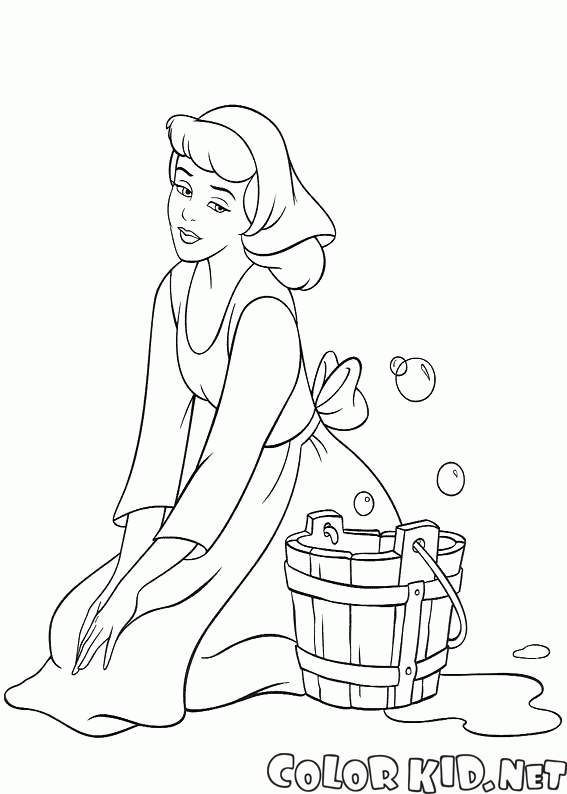 Disegni da colorare - Cenerentola lava il pavimento