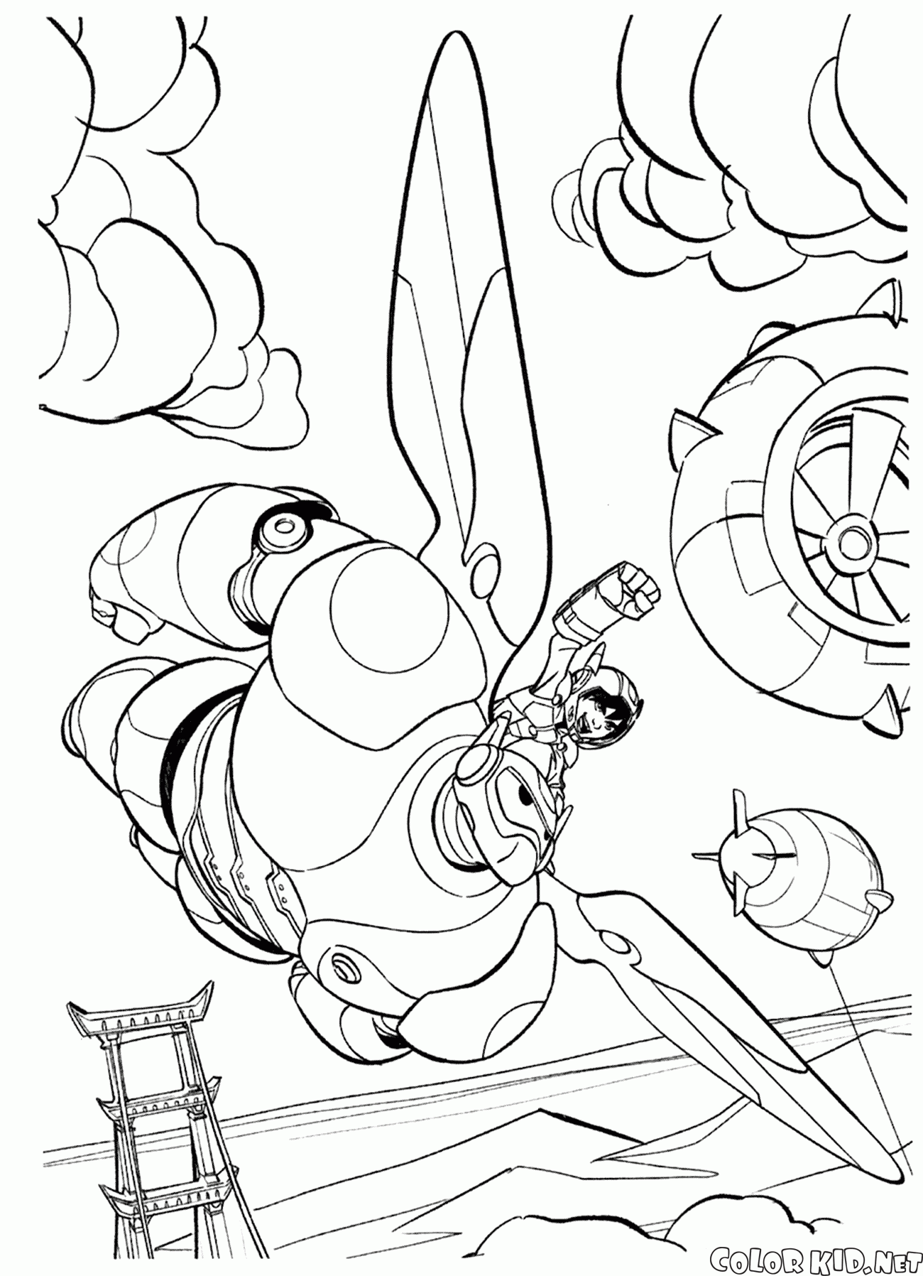 Disegni da colorare - Hiro e Baymax salvare la città