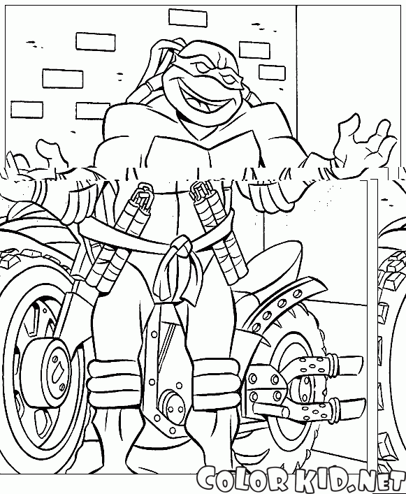 Disegni da colorare - Michelangelo e moto