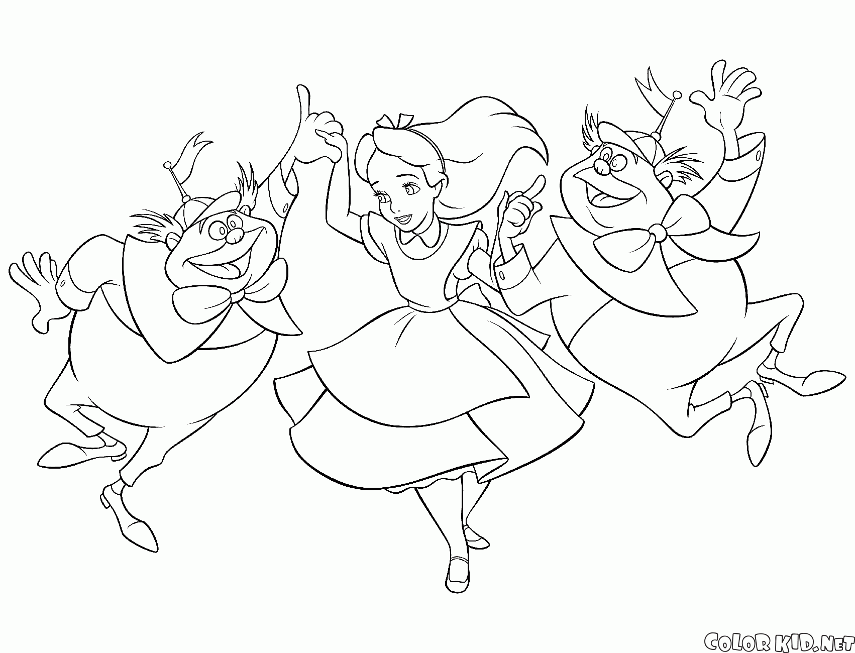 Puoi scaricare e stampare le pagine da colorare per bambini Tweedledee e Tweedledum dal nostro sito web.