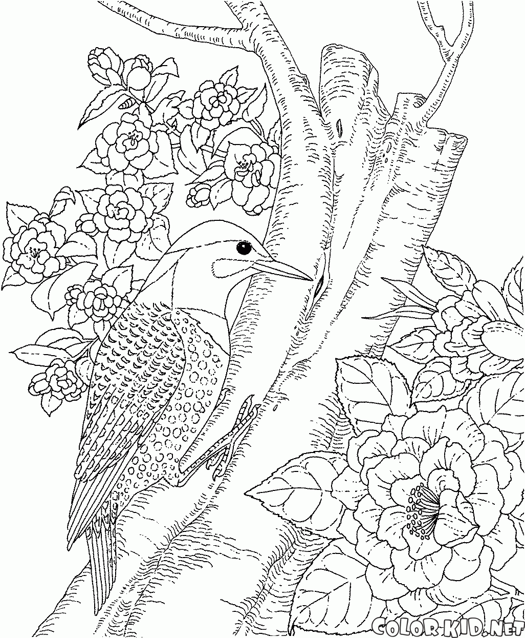 Disegni da colorare - Picchio nella foresta