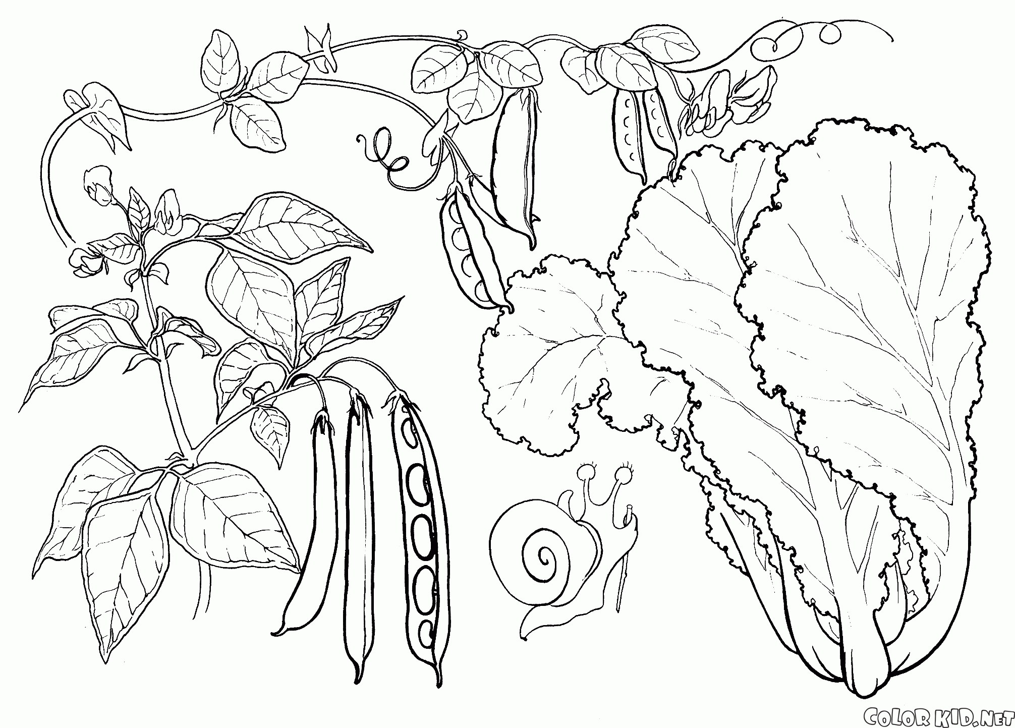 Disegni da colorare - Lattuga, piselli e fagioli