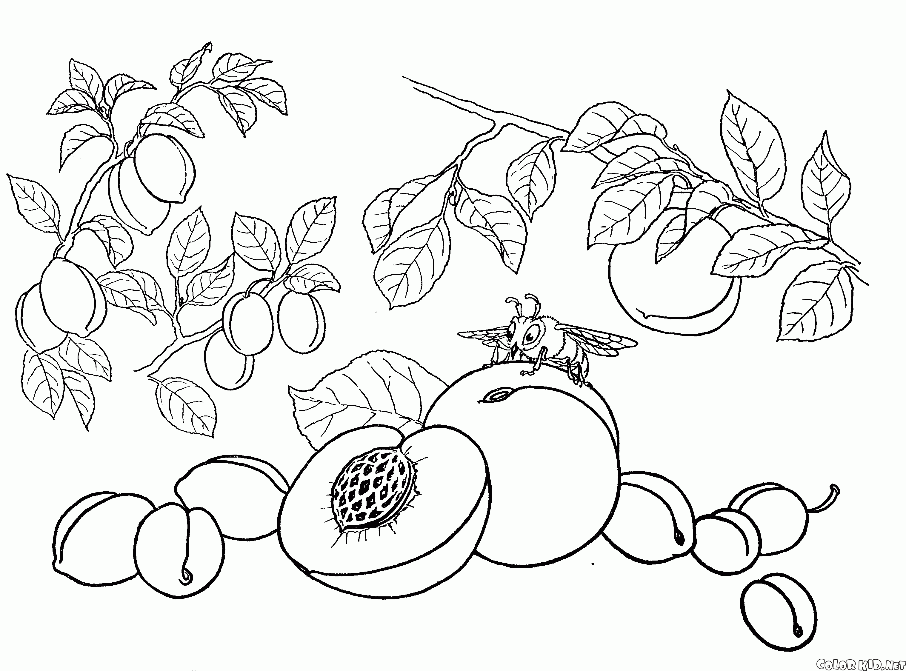 Disegni da colorare - Pesca, albicocca, prugna