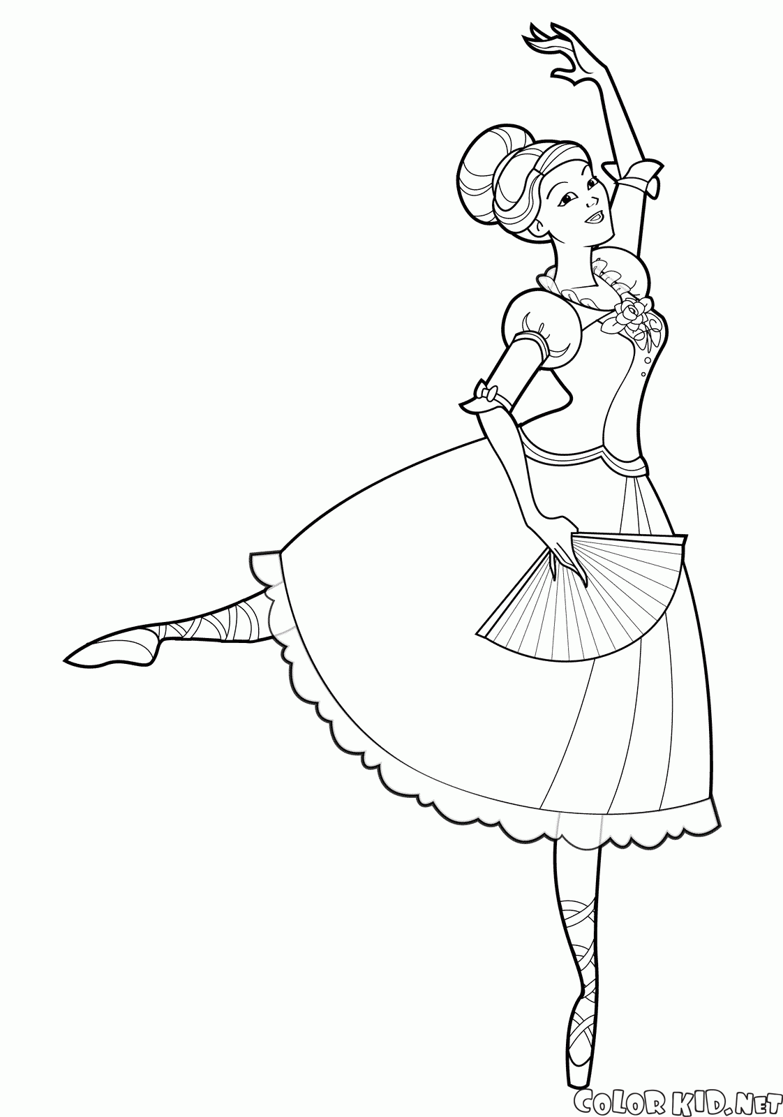 Puoi scaricare e stampare le pagine da colorare per bambini Danzatrice con un fan dal nostro sito web.