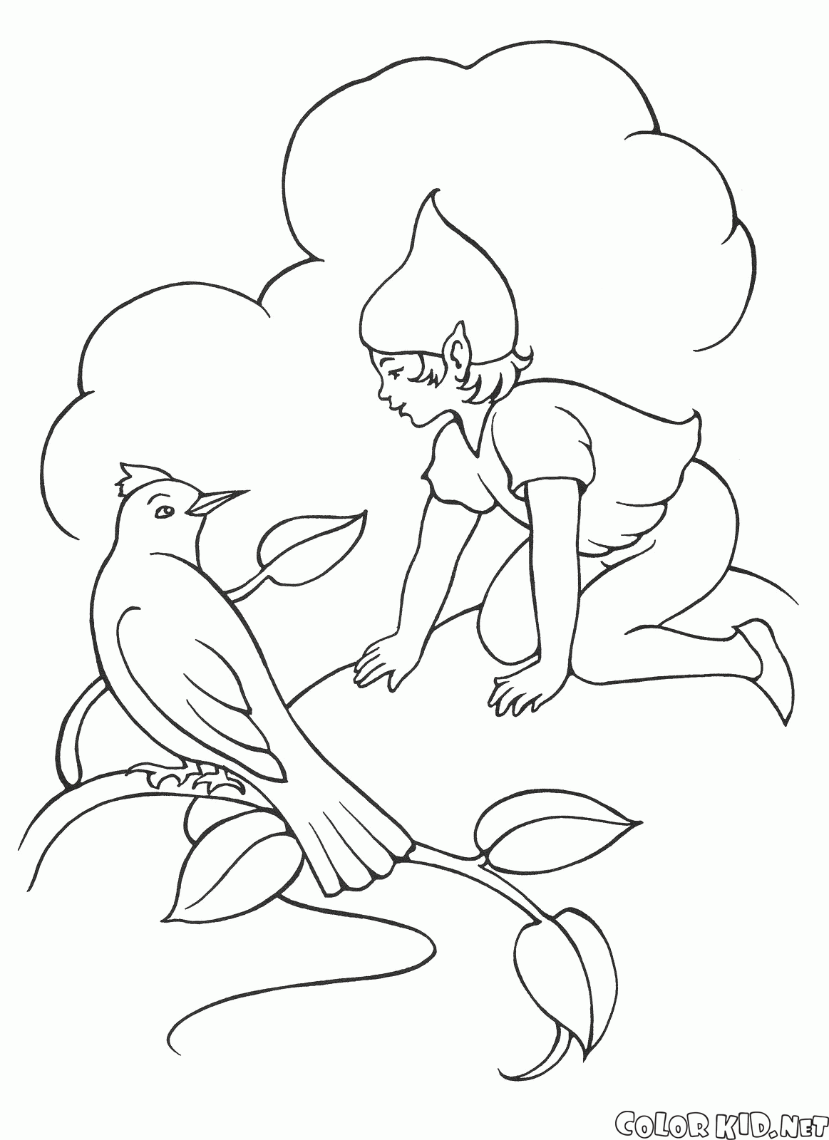 Disegni da colorare - Elfo a parlare con un uccello