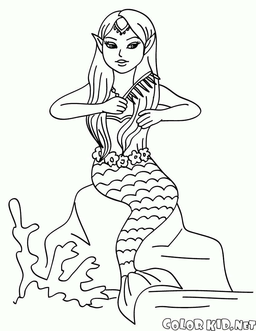Disegni da colorare - Mermaid a pettinarsi i capelli
