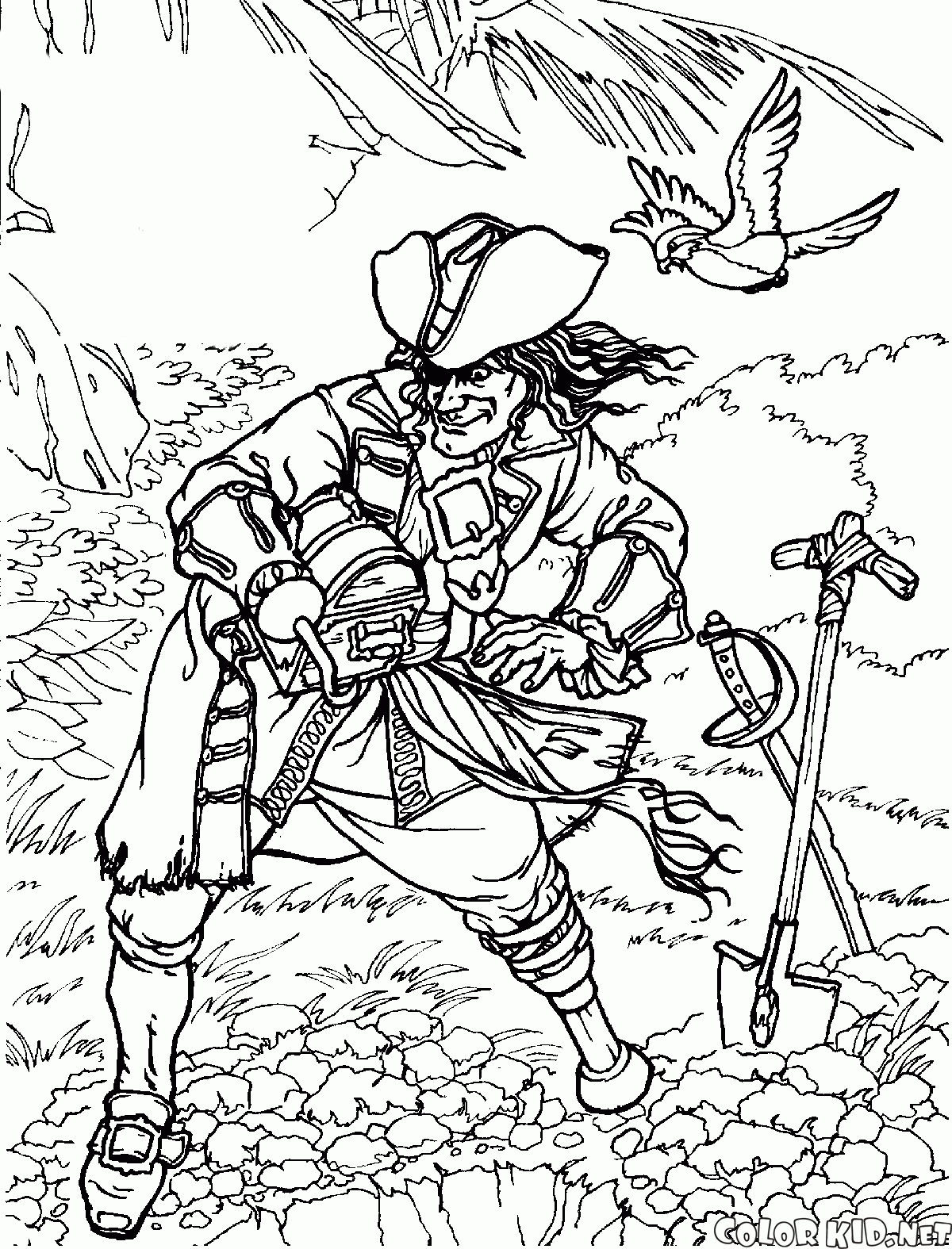 Disegni da colorare - Pirate nasconde tesoro