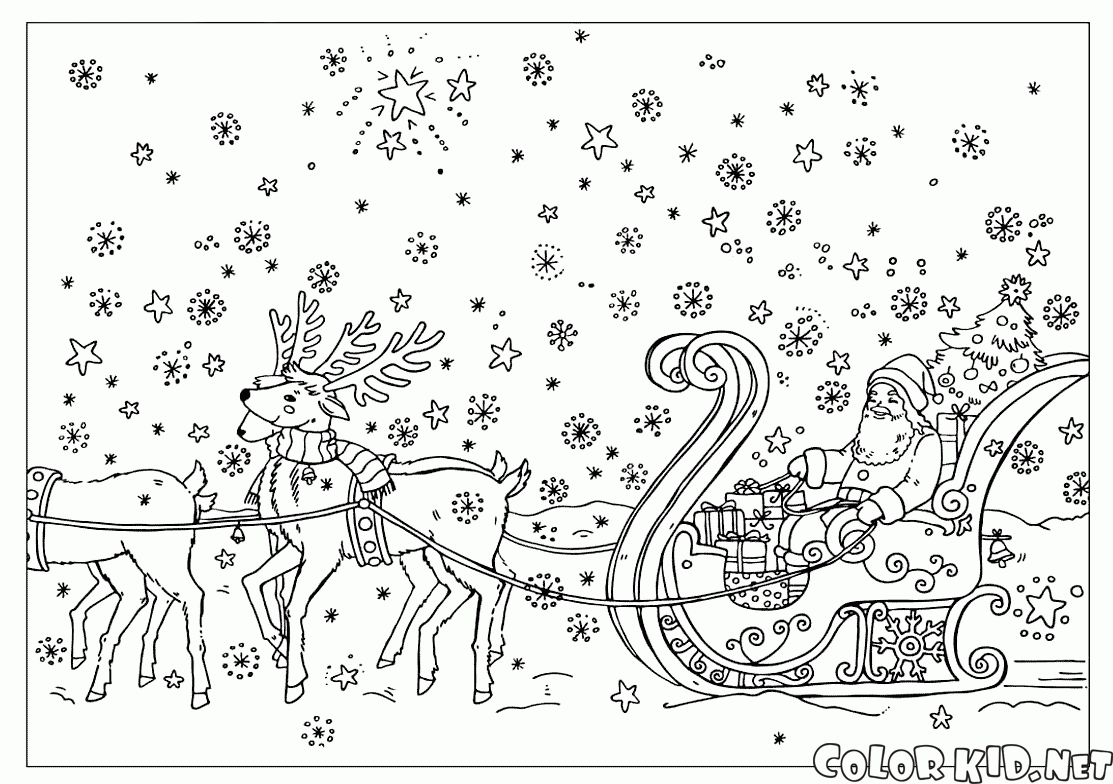 Disegni da colorare - Babbo Natale in una slitta