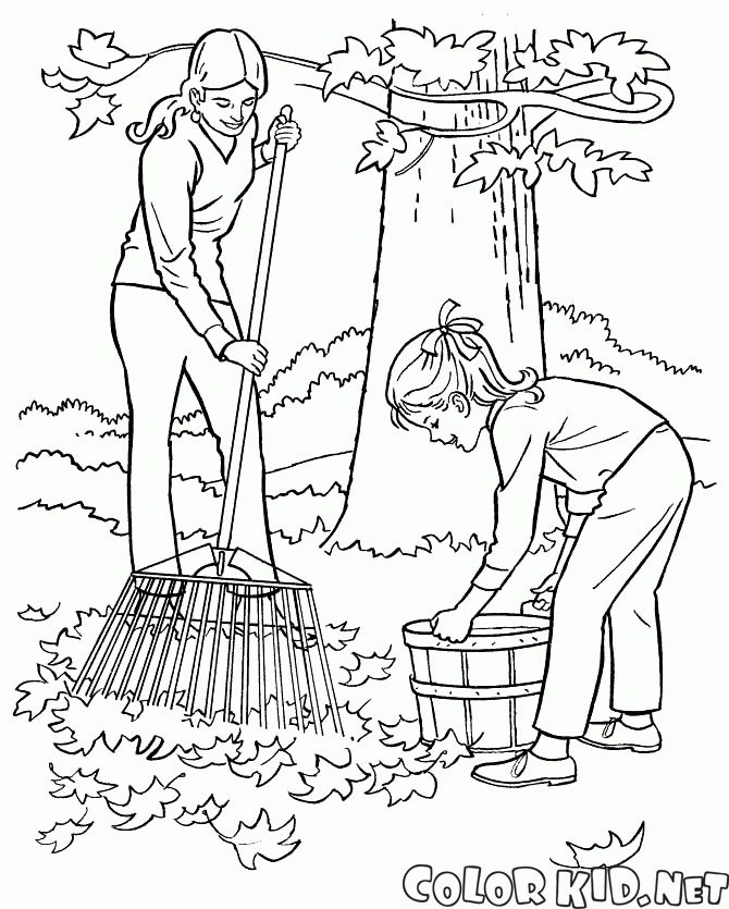 Pulizia di foglie cadute